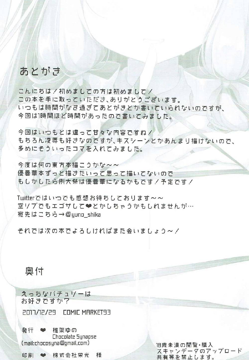 えっちなパチュリーはお好きですか?